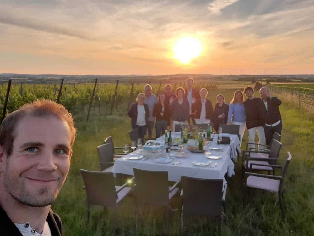 Im Lieblingsweingarten des Urgroßvaters findet sich die heute größte Lage des Weinguts – der Heiligenberg. Sein Name steht für geschichtsträchtige Hintergründe: Während er von Wallfahrer:innen auf dem Weg nach Mikulov auch heute noch begangen wird, wurde in Zeiten des Mittelalters vom Galgenberg aus das letzte Gebet Richtung Heiligenberg gesprochen. Die Böden des Heiligenberg beinhalten den für das Weinviertel typischen Löss, Lehm sowie humusreiche Schichten. Nach Süden hin ausgerichtet und zugleich den Winden der Region ausgesetzt, bietet diese Lage ideale Bedingungen für den Anbau gebietstypischer Weißweinsorten.